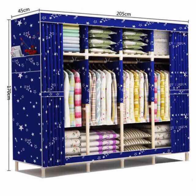 Portable Double Hanger Assembly Adult Canvas Closet Simple Closet