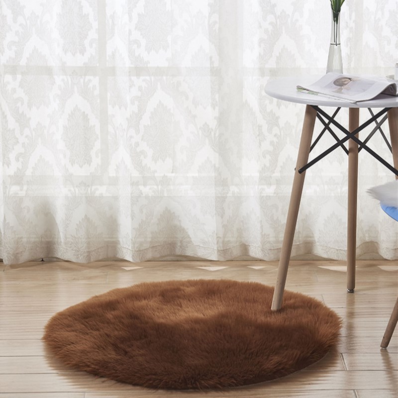 Solid Color Fluffy Carpet Sofa Bedside Foot Mat Round Anti Slip