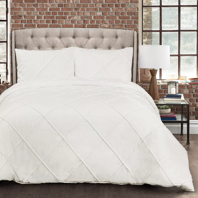 Diamond Pom Pom 3 Piece Comforter Set Lush Decor White King For