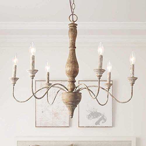 Lnc French Country Chandeliers Wood 6 Lights Rust Arms For Dining