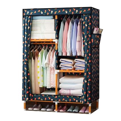 Polay Deluxe Utility Closet Wooden Fabric Portable Wardrobe