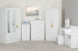 Nevada White Gloss Bedroom Furniture Range Wardrobe Drawers