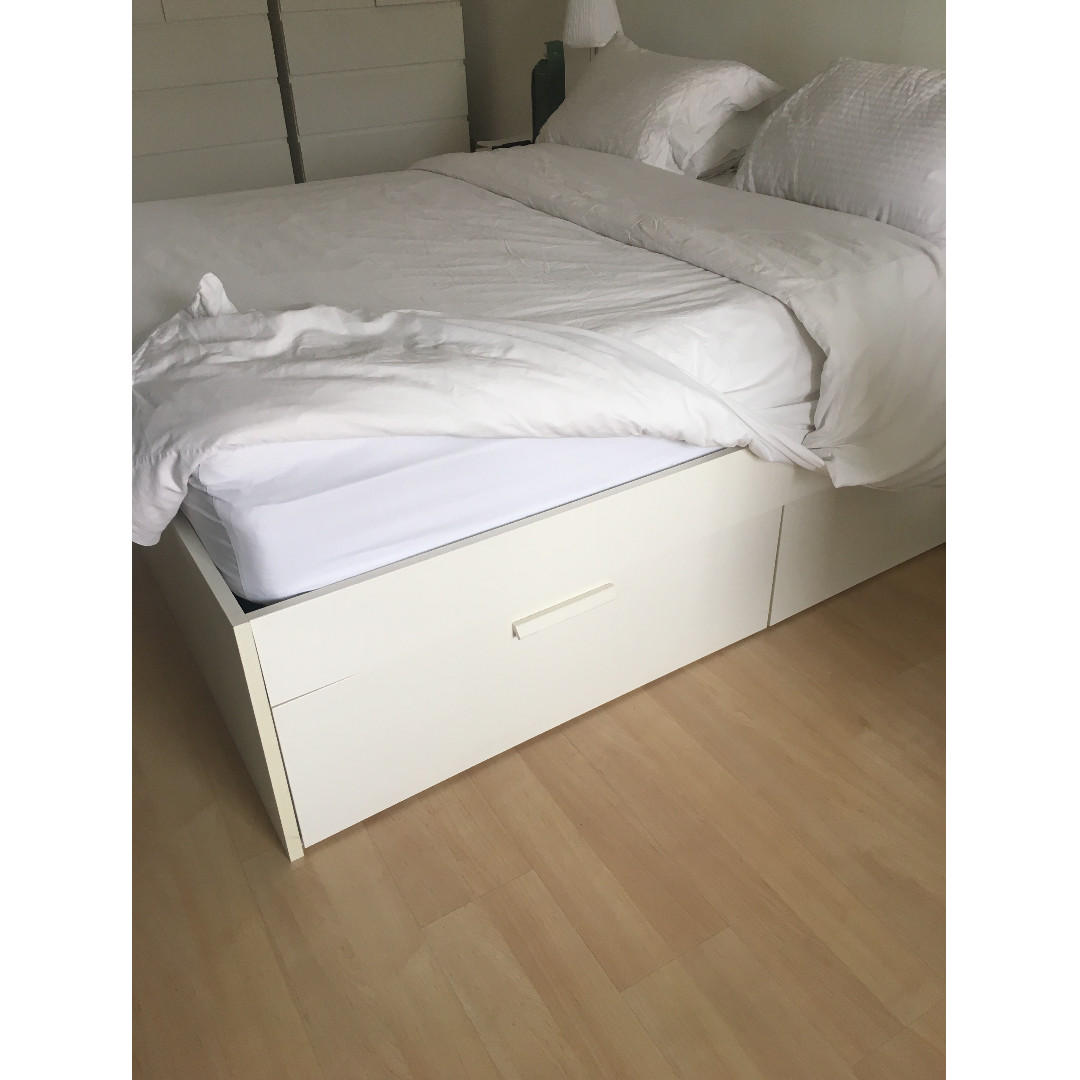 Slakt Bed Frame With Underbed And Storage White Ikea