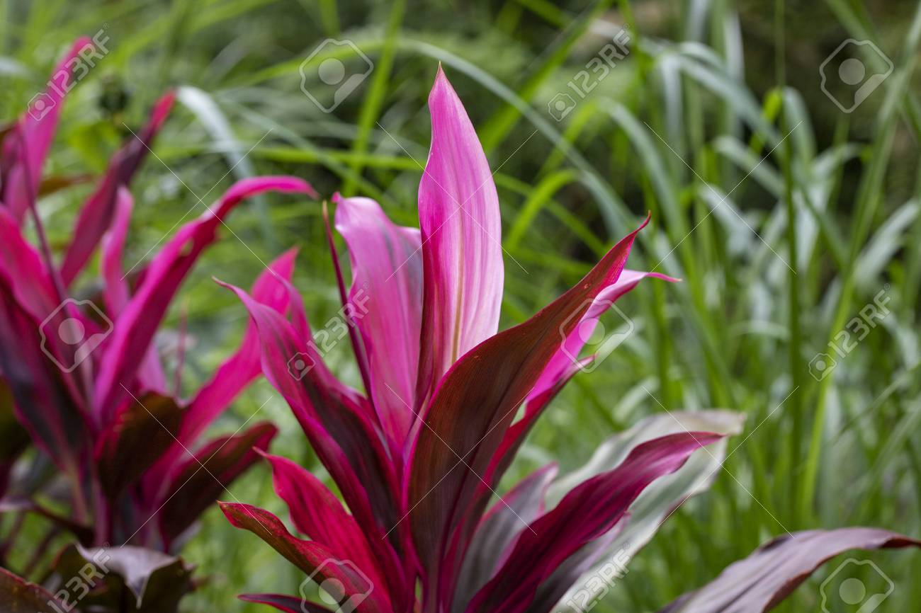 Tropical Garden Plant Closeup Photo Bright Pink Leaf Texture