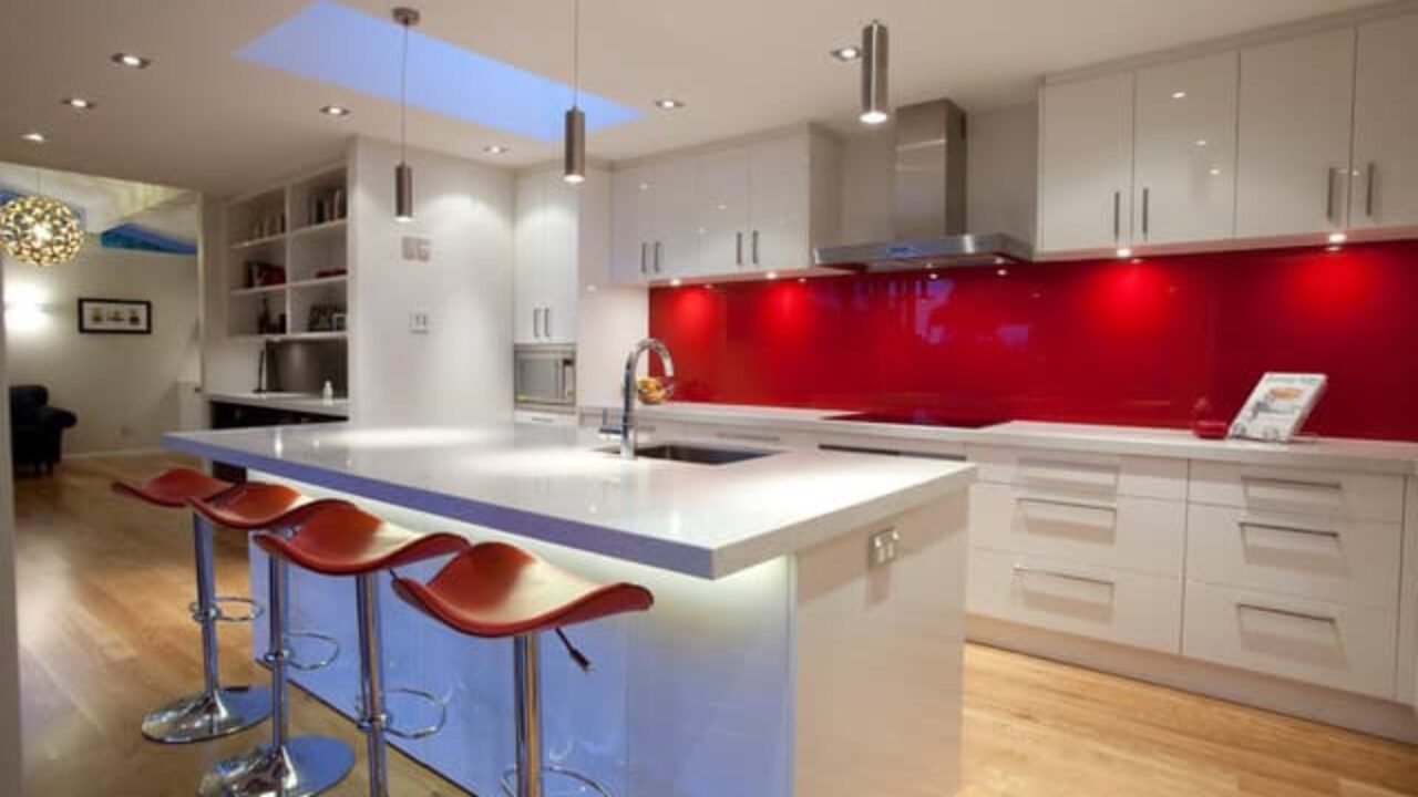 Kitchen Red Glass Backsplash Color Stove Exhaust Spotlight Switch