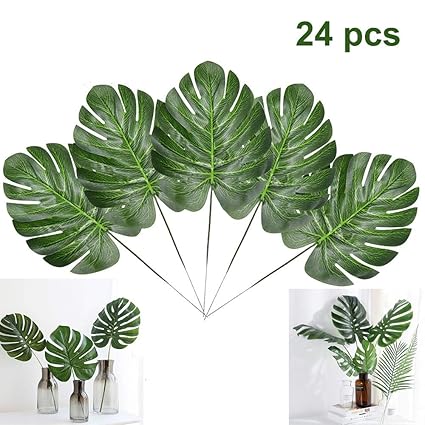 Yqing 24 Pcs Tropical Plant Palm Leaves Faux Palm Leaves With