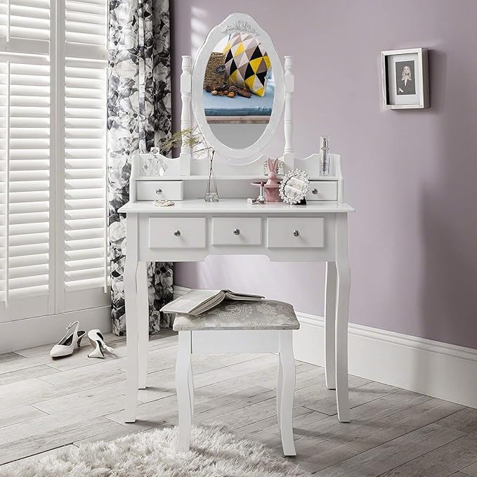 Bedroom Furniture Vanimeu White Dressing Table And Stool Set 3