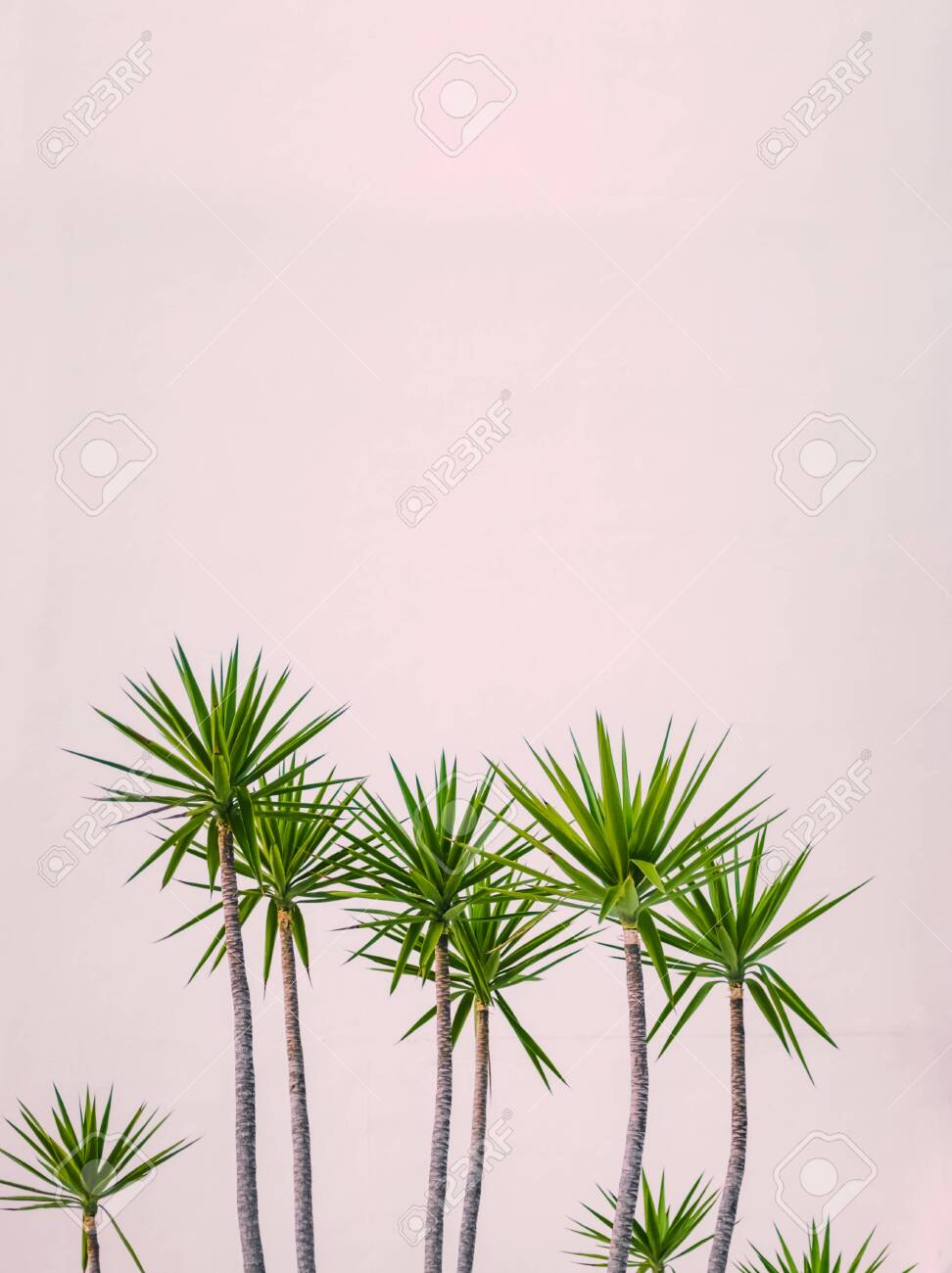 Detail Of Tropical Plants Against A Pastel Pale Hotel Wall In
