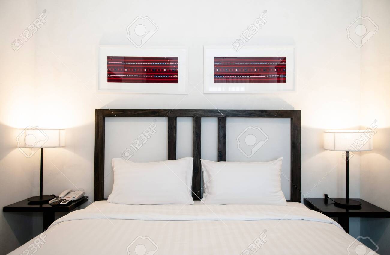Asian Contemporary Vintage Hotel Bedroom With White Bed Sheet