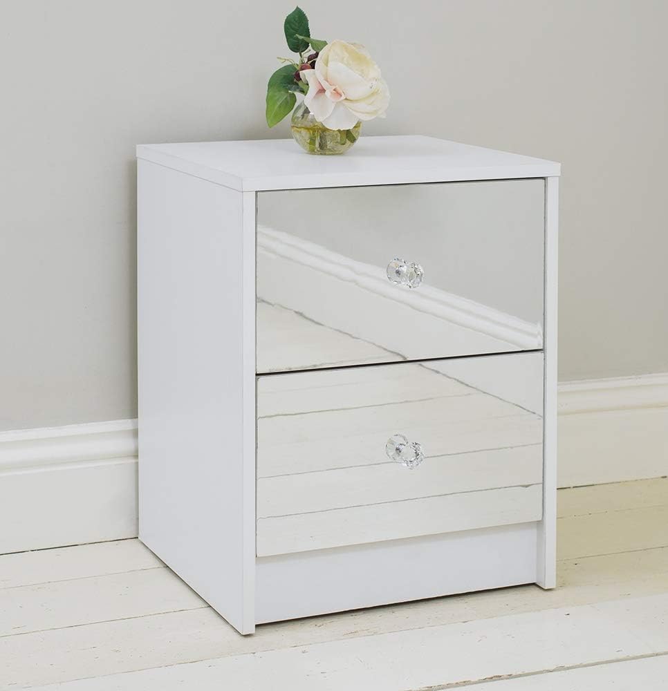 Addspace 2 Drawer Mirrored Bedside Table Matt White Frame Bedroom