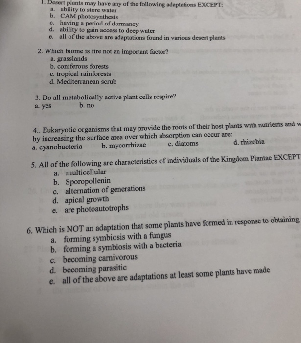 Solved 1 Desert Plants May Have Any Of The Following Ada