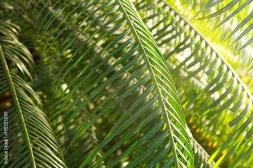Exotic Tropical Evergreen Plants In Botanic Garden Palm Leaves