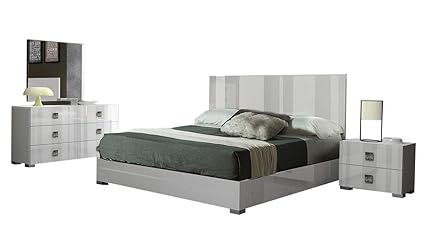 Amazon Com Mika Modern Premium Queen Bedroom Set In White Lacquer
