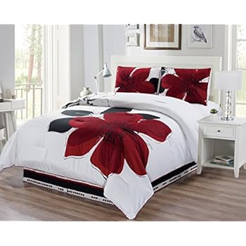 Amazon Com 8 Piece Burgundy Red Black White Grey Floral Comforter